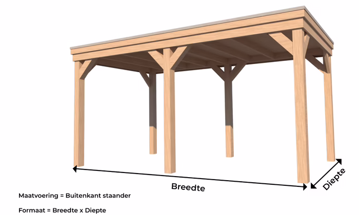 - 4 of 6 staanders van 140x140x2500 mm (op aanvraag op lengtemaat te leveren), (overkappingen tot 4100 mm worden geleverd met 4 staanders)
